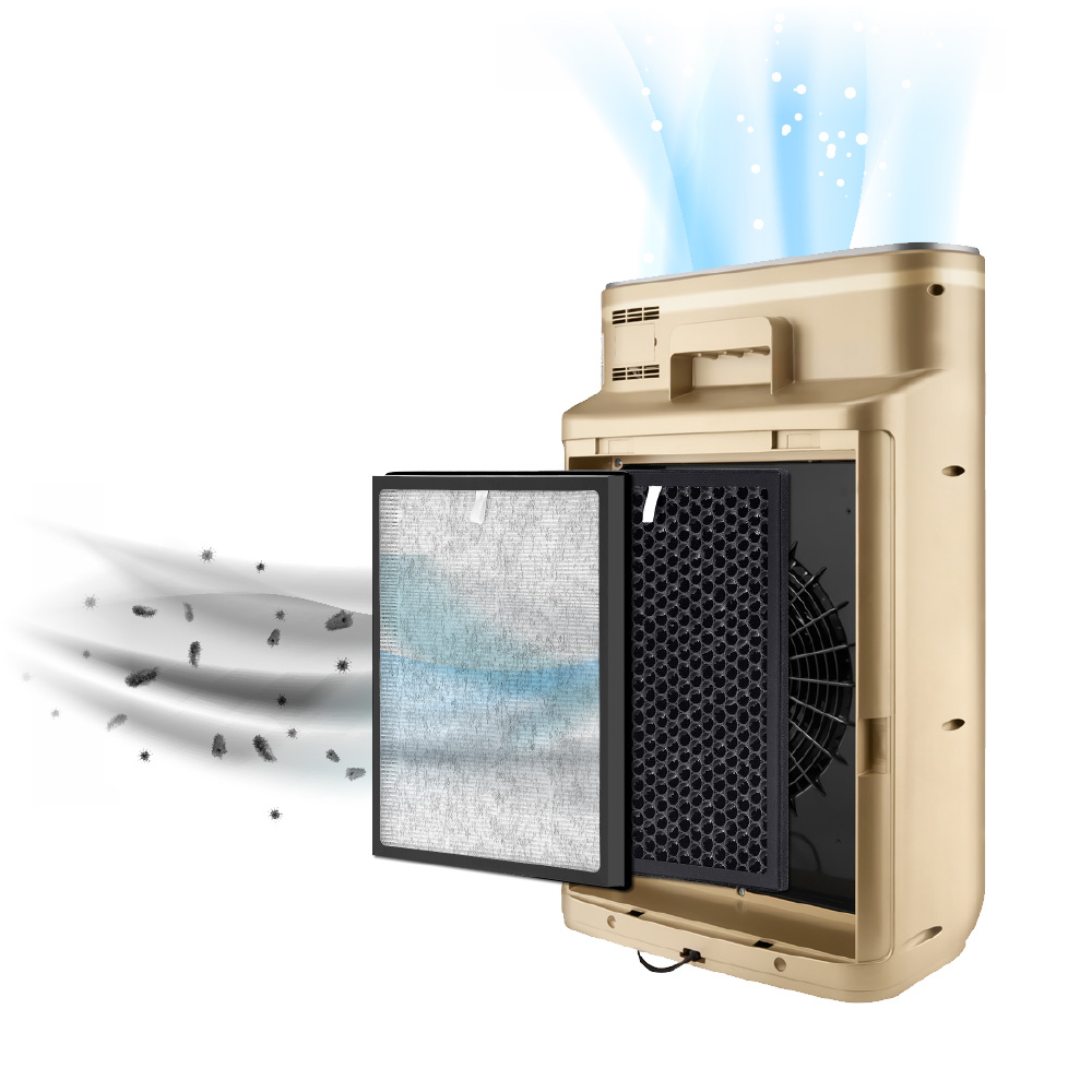 Filtr węglowy eliminuje LZO (m.in. benzen i formaldehyd) oraz nieprzyjemne zapachy w tym dym papierosowy.