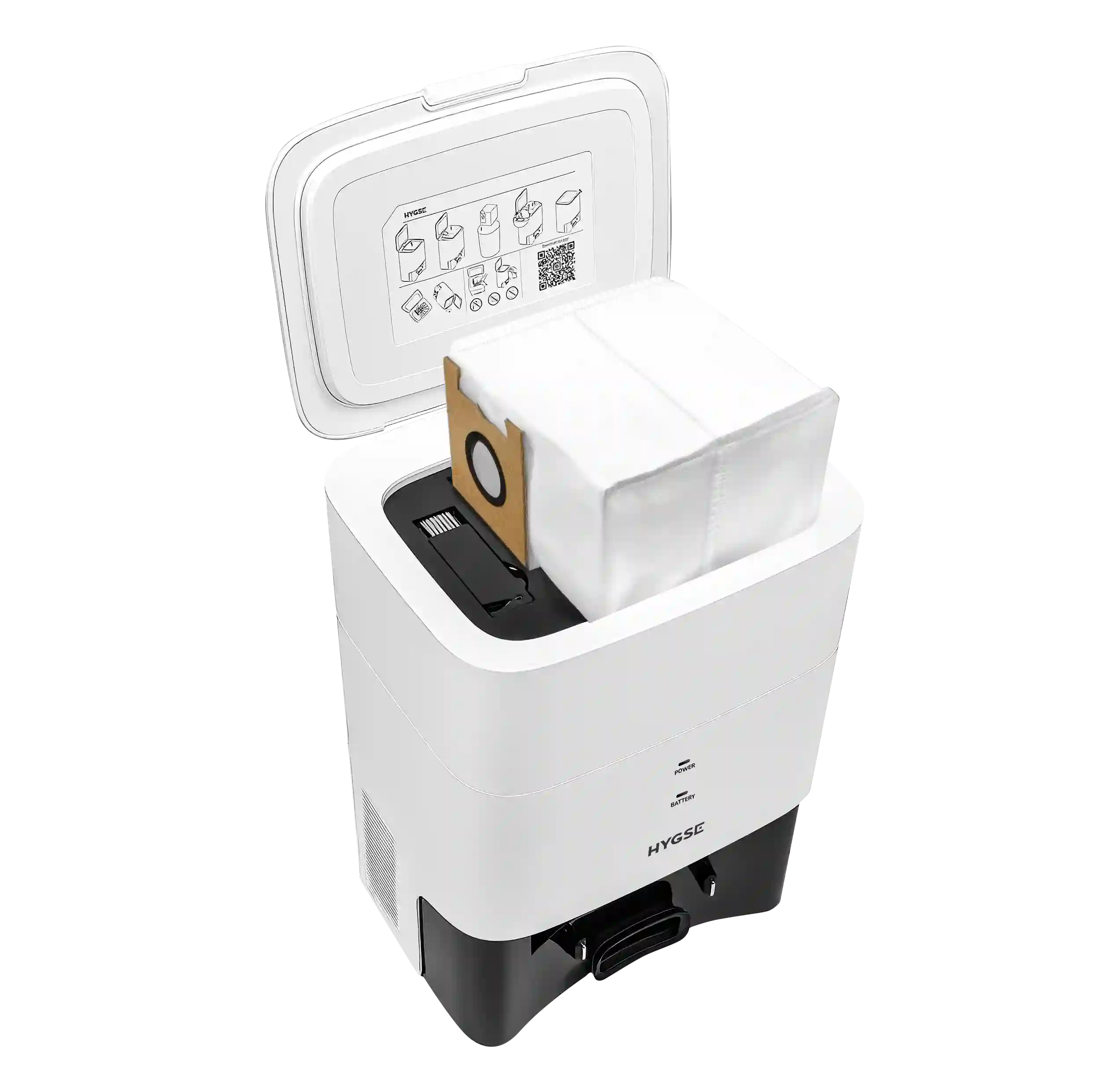 Urządzenie odkurza oraz myje podłogi, a ilość uwagi, którą trzeba mu poświęcić, została ograniczona do absolutnego minimum. Hygse Movo sam opróżnia swój zbiornik i w razie potrzeby ładuje akumulator.